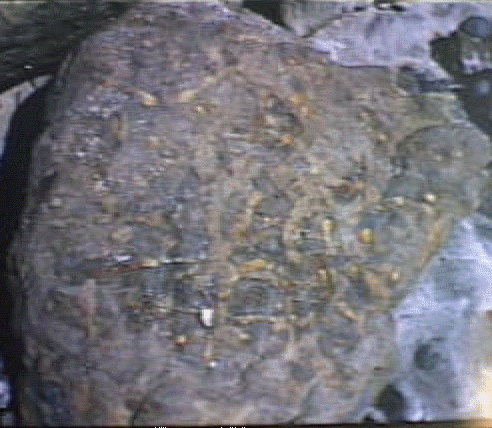 | Some of the rocks near the reef contain abundant pelcypods. | ![]() |