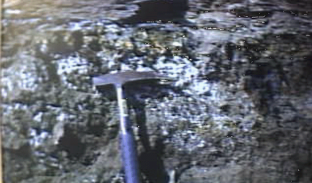 | The presence of abundant carbonaceous material and what appears to be sulfer, indicate that at times, the environment was similar to that of a lagoon filled with much silt and organic debri. | ![]() |