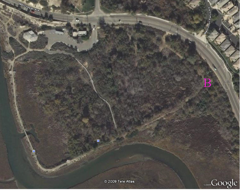 To reach San Elijo Lagoon Visitor's Center take the Manchester off ramp from I5 and proceed west approximately 1 mile. The parking lot is on the left and poorly marked, but directly across from a water treatment facility. http://www.sanelijo.org/